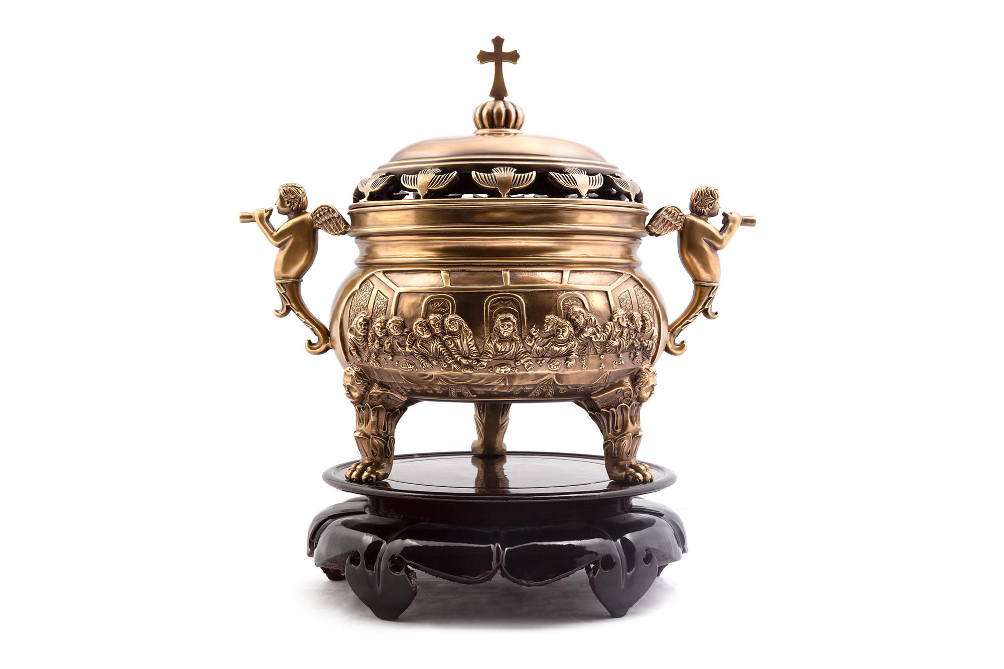 Chân đèn gỗ, mâm thờ, lọ hoa, kỷ trà, ống hương, tượng thờ