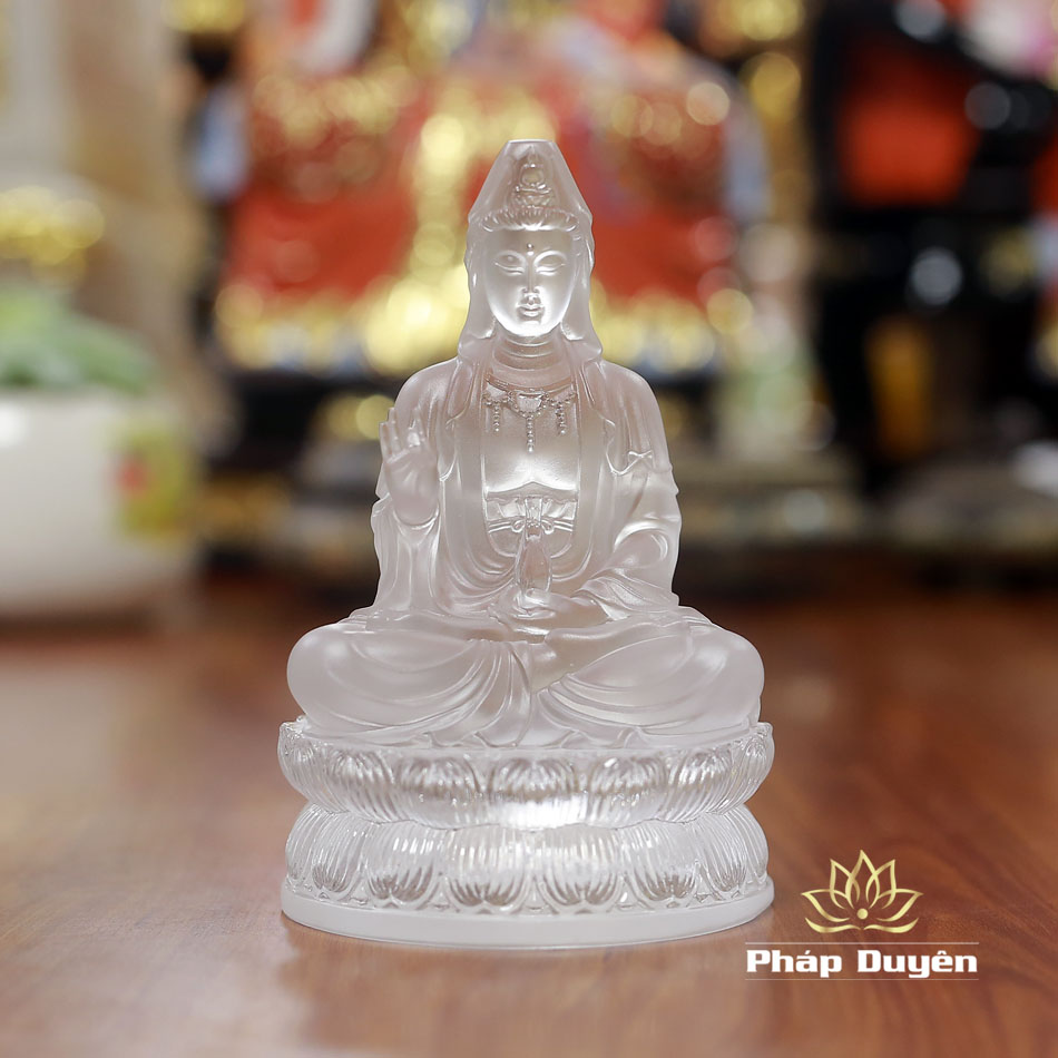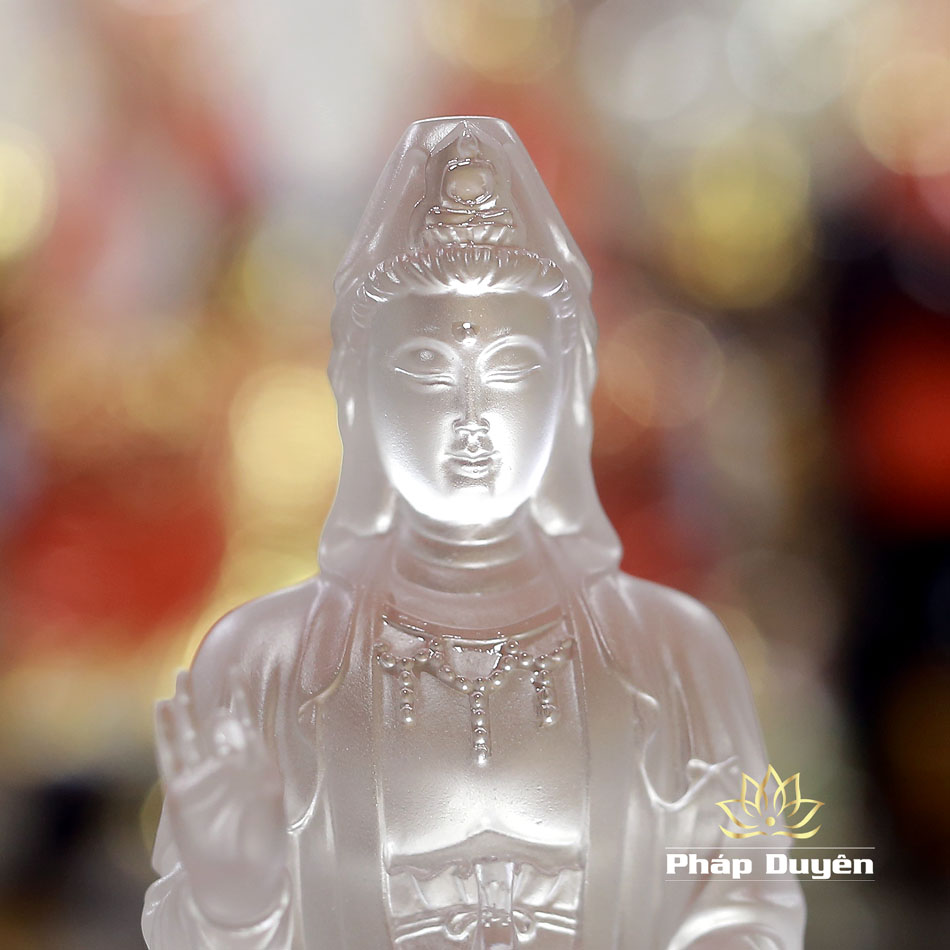 Tượng Quan Âm Bồ Tát bằng chất liệu lưu ly trắng trong suốt là một trong những vật phẩm phong thuỷ được nhiều người lựa chọn để cầu bình an, hóa giải tai ương và dẫn dắt tâm linh. Với vẻ đẹp thanh thoát, nhẹ nhàng, tượng mang lại nguồn năng lượng an lành, tịnh hóa không gian sống và làm việc.